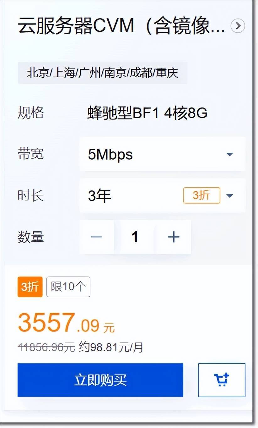 (CVM 4核8G 5M蜂驰型BF1,价格3557.09元)