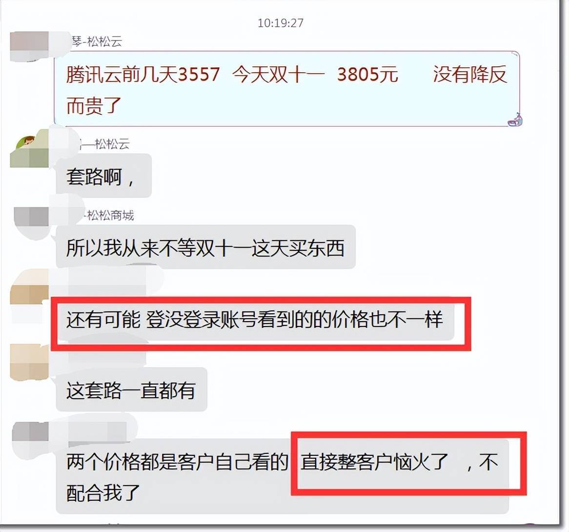 本来我们安排客户是双十一当天买,大家的观念里双十一当天就应该便宜点万店优配,结果腾讯云搞这么一出,把我们都整恼火了,我和客户的心里都不是滋味,客户直接给我们甩脸子不干了,现在采购计划泡汤。
