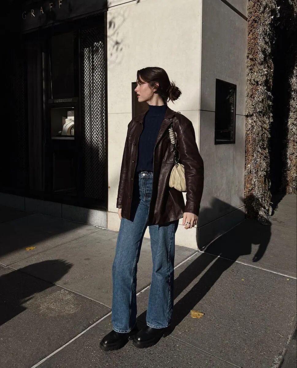 袋鼠鞋和今年超火的弯刀裤也很适配,不过弯刀裤更适合高个子,小个子如果想尝试这个搭配可以穿短款外套来优化比例。▼